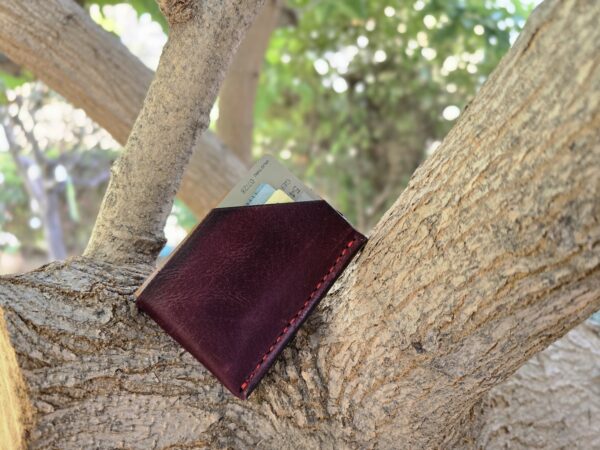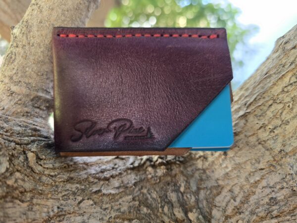 - A slim, handcrafted leather wallet with three pockets for cards and folded cash. Designed for elegant minimalism and everyday utility.